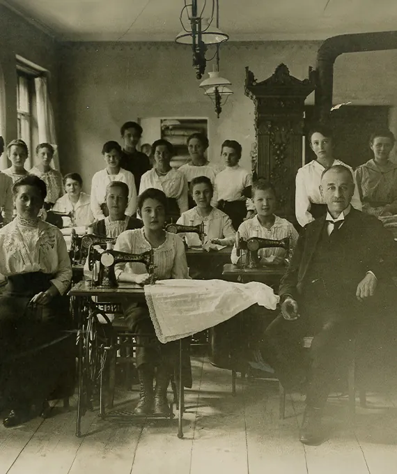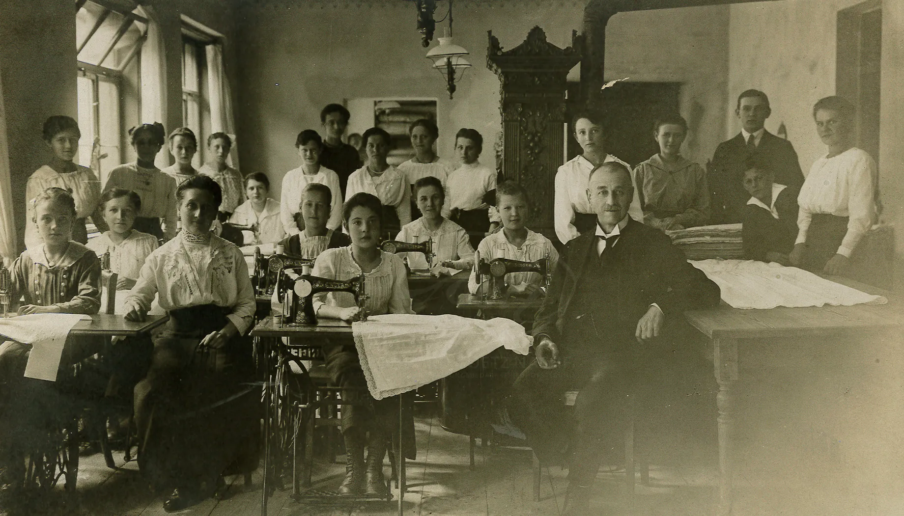 Die historische Aufnahme mit der Firmenbelegschaft von 1920 dürfte in den Räumen des Velodroms aufgenommen worden sein. Bis zum 11.05.1934 blieb Johann Adam Leopold Goetz Inhaber des Unternehmens, er verstarb ledig.