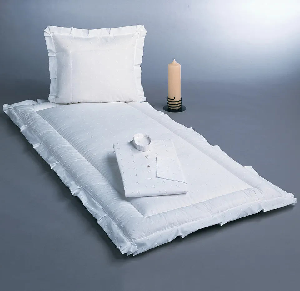 Seit jeher produzieren wir Sargausstattungen, Sterbewäsche und Trauerwaren für Bestatter.