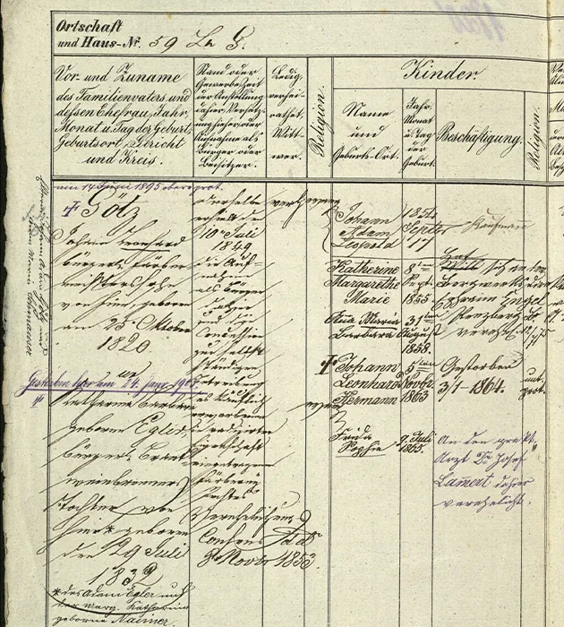 Johann Leonhard Goetz heiratet Katharina Barbara Egler. Sie hatten 5 Kinder, der älteste Sohn Johann Adam Leopold Goetz (17.09.1854 bis 14.04.1941) führte zusammen mit seinem Vater die Färberei weiter.